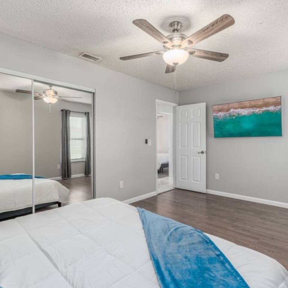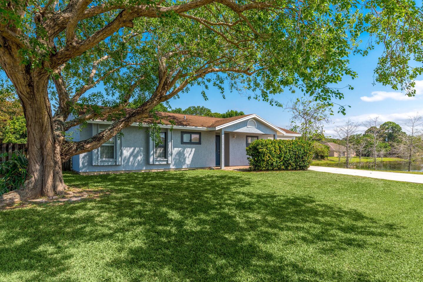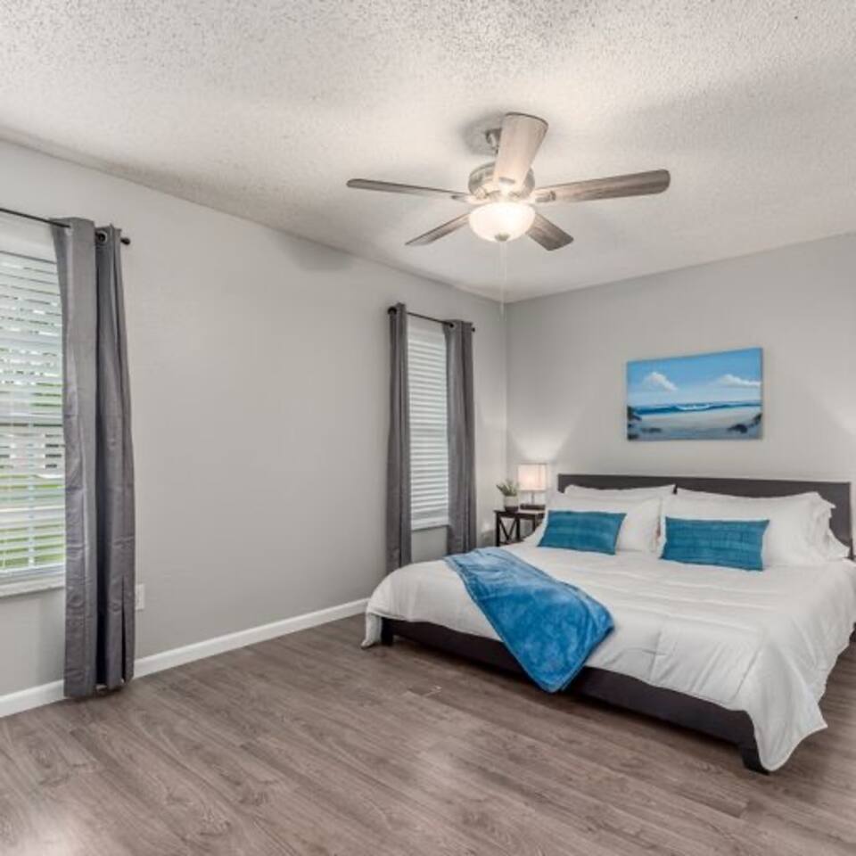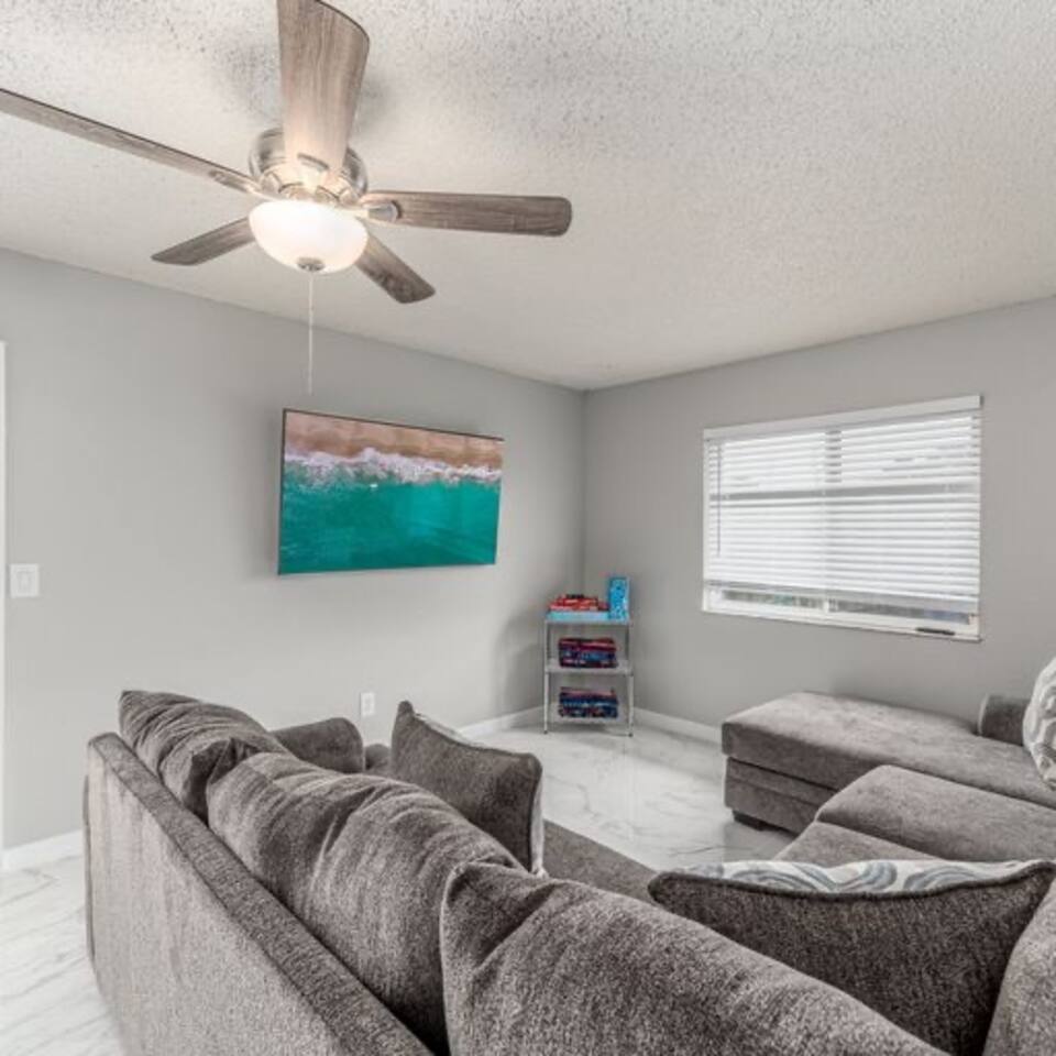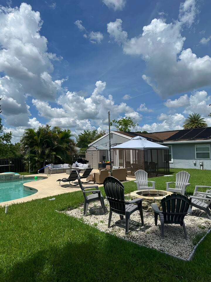 Enjoy Florida in this peaceful home located just minutes from the beach. All three rooms have a smart TV and are set up with cozy beds to give you a great night sleep. The living room is designed to feel more like a move theatre with the 65 inch TV for you to enjoy. There is an indoor and outdoor dining area, in addition to a fire pit and other private spots. You won’t want to leave on checkout day!