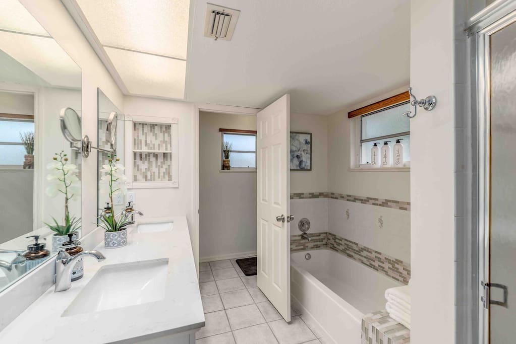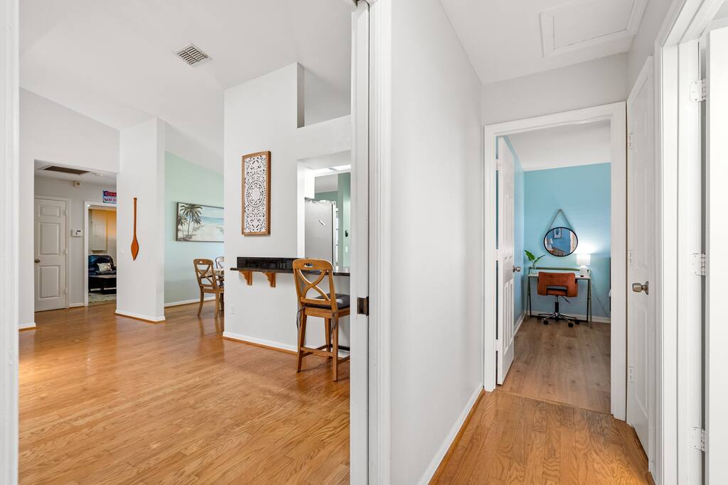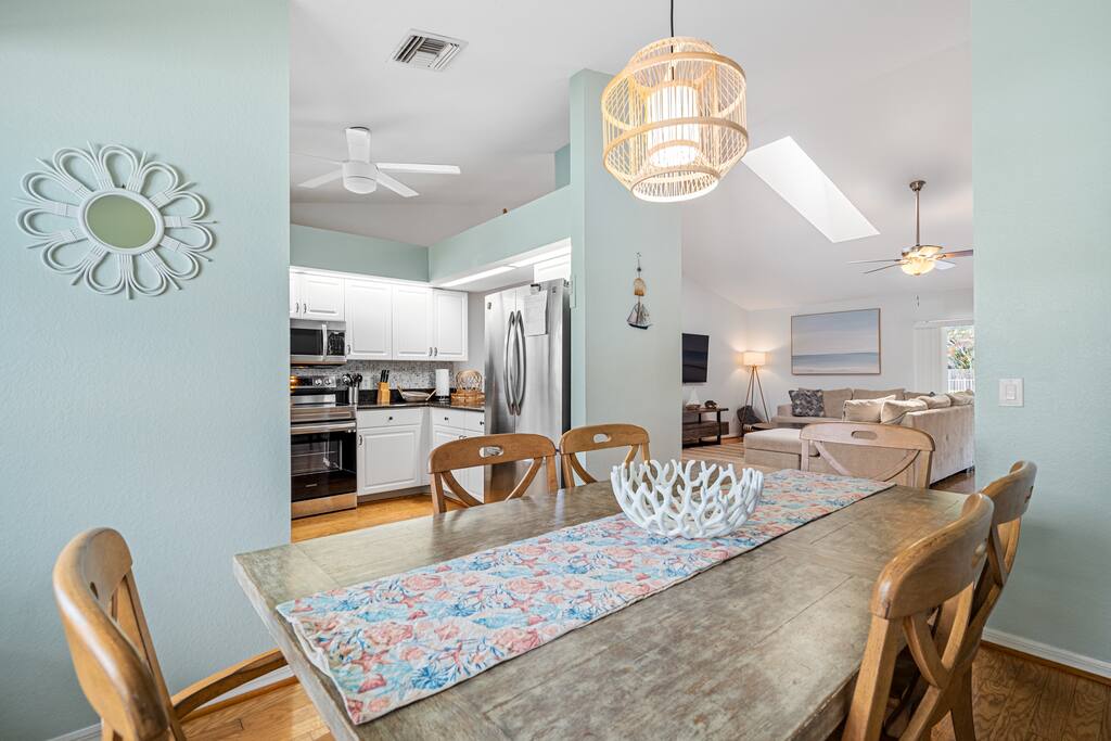Quiet single family home neighborhood with 15 minutes of the beach. Property is bordered to one side by our neighborhood natural preserve. Or just for more privacy! There is also an 8 mile biking trail water view or nature view to the beach available from your front door. All major stores are within a few miles drive. Many restaurants including on the water dining within 10 minute drive! See our guide.