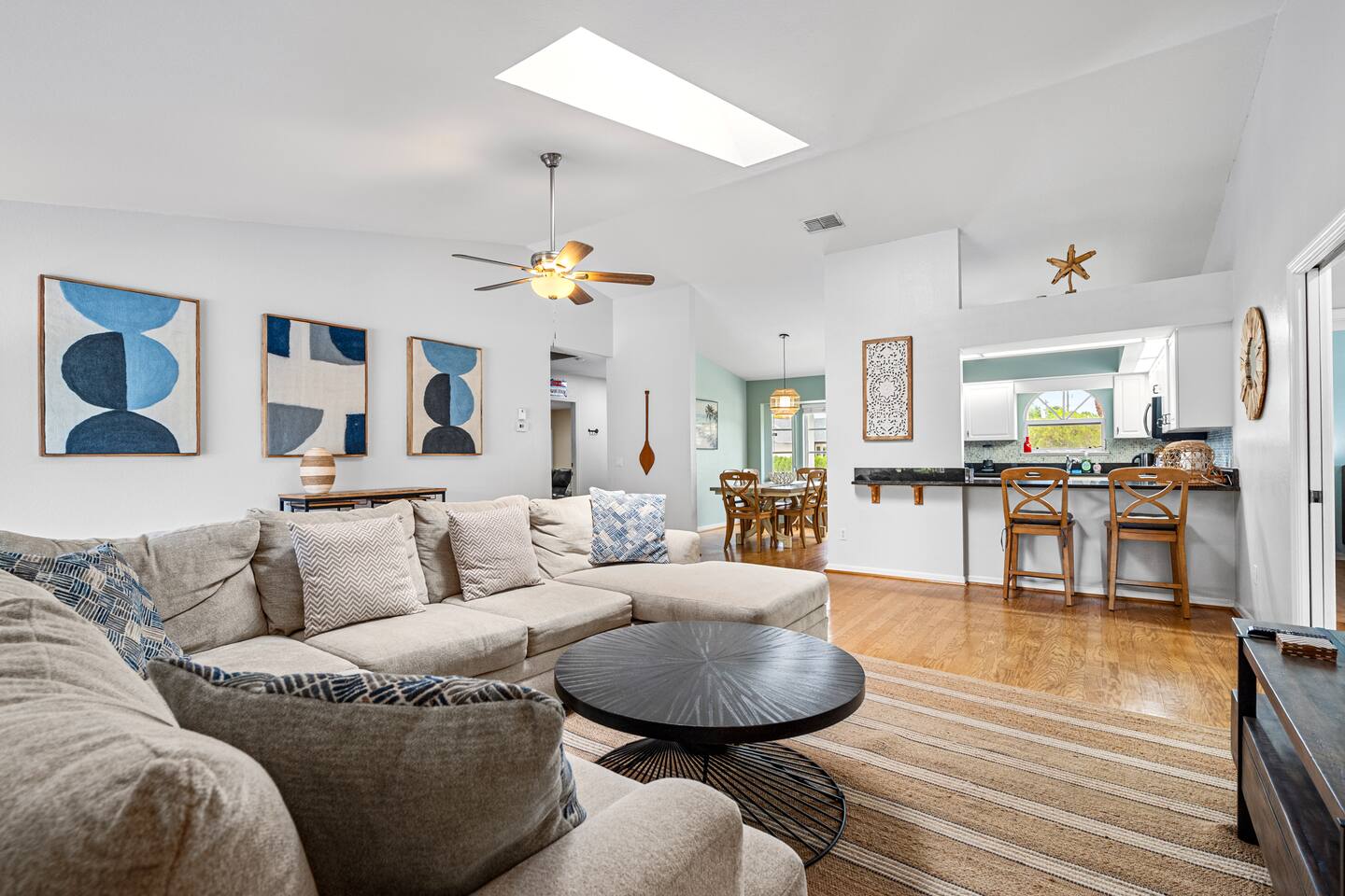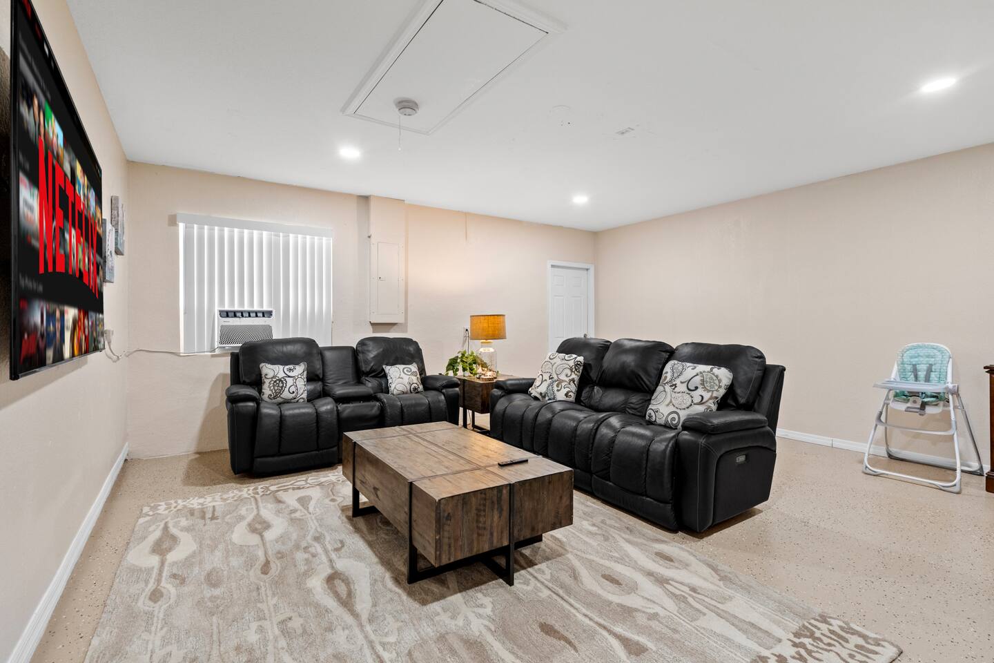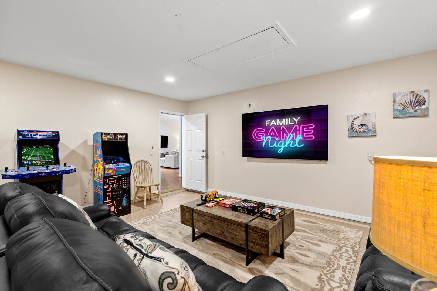 We did our best to make sure the home is set up in a way so you won't want to leave. The general living space is designed with plenty of seating so everyone can be as social as they would like. There are comfy couches and spots to gather in several areas. The bedrooms have large comfy beds, we know a cozy sleep makes the vacation. All bedrooms also have their own smart TV, perfect for some private time. One of the best parts about the inside is the theatre room, equipped with a large projector screen and theatre style seating. Perfect for movie nights or sporting events. No matter where you are spending time on the property you are sure to be making memories.