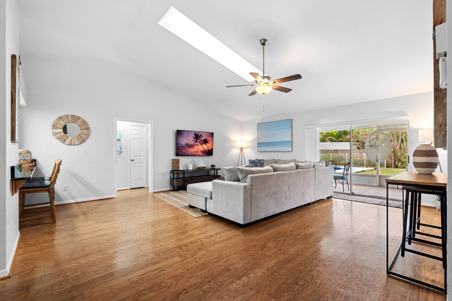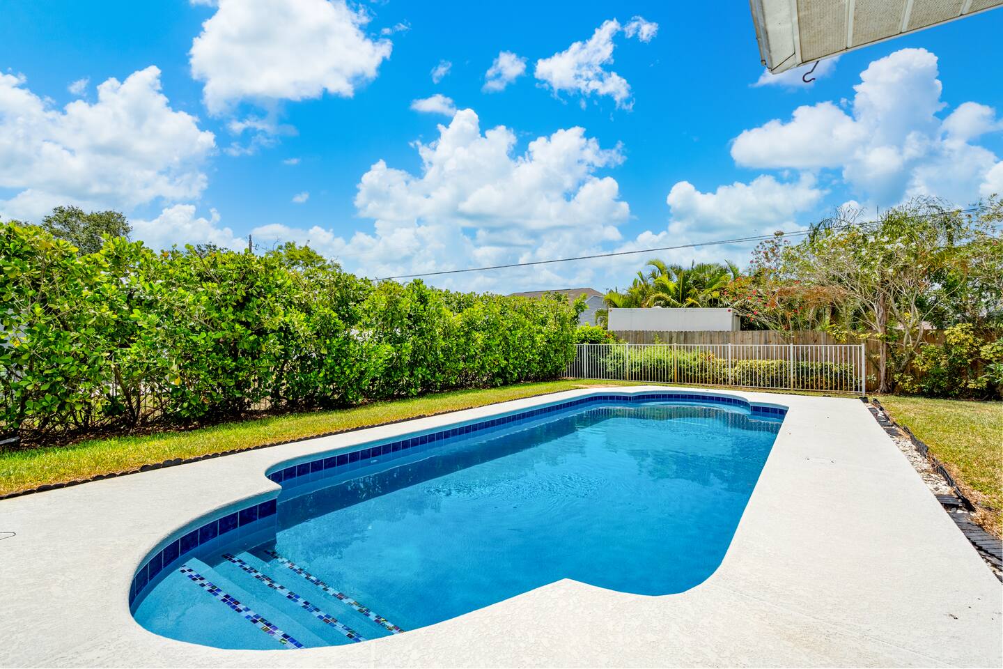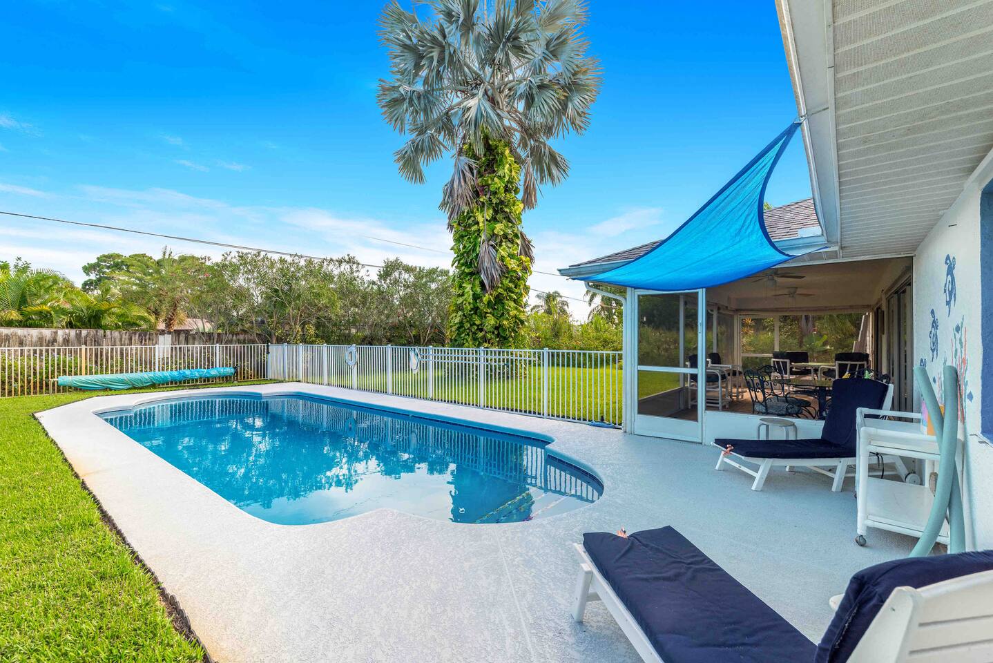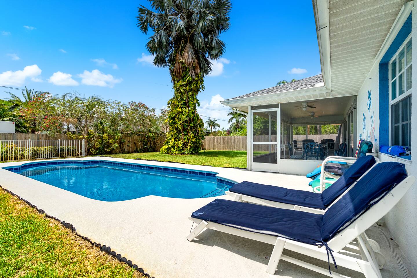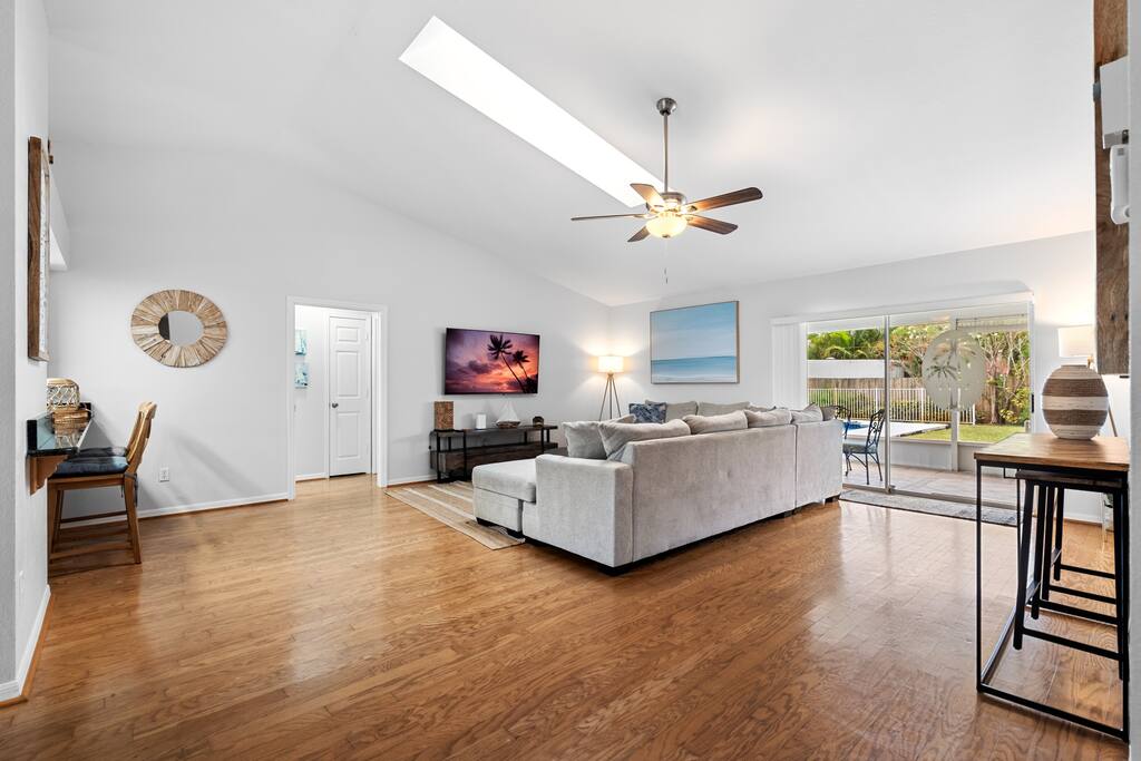 This is your instant "home away from home". The property is located just minutes from the beach! However the brand new salt water pool makes it easy to forget the beach is so close. There is outdoor seating in the sunshine, and also located in the screened in patio area, new privacy wood fenced back yard making it perfect for enjoying the outdoors . The landscaping is also amazing, with a beautiful 30 FT Bismarck palm outside. If you are a regular vacationer this will be your new vacation spot.
