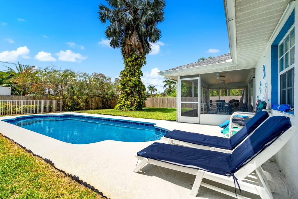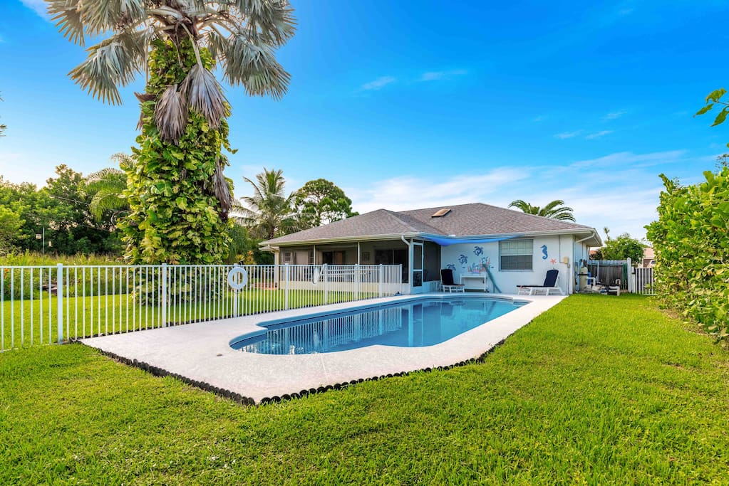 ⭐️Palm Beach Airport 47 miles ⭐️Beaches- Jenson Beach 6 miles Walton Rocks Beach/Dog Park 16 miles ⭐️Golf- The Saints at PSL 1.9 miles Savannah Club 5.4 miles PGA Golf Club 12 miles ⭐️Cleveland Clinic 12 miles We warmly welcome pets at our property. To ensure a smooth experience for all guests, kindly remember to include your furry companion in the reservation. We appreciate your cooperation in adding your pet's details beforehand. Pool heating is available for $25/day and is recommended for winter months. (Pool heat must be requested for entire stay at least one day before checkin to ensure heating time). We heat our pool to 85 degrees.