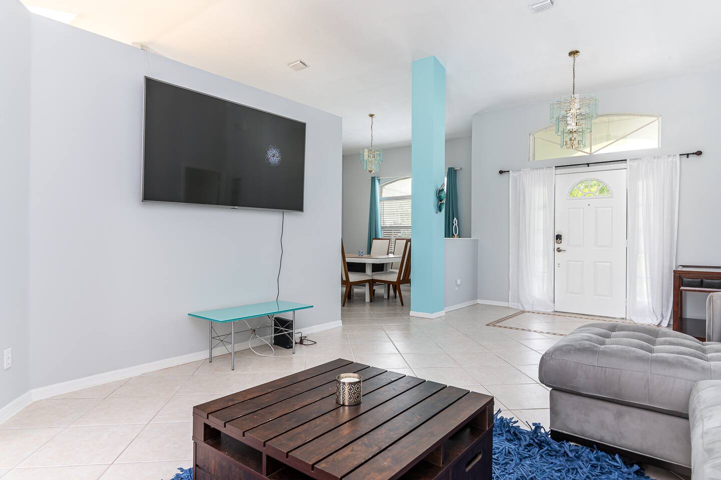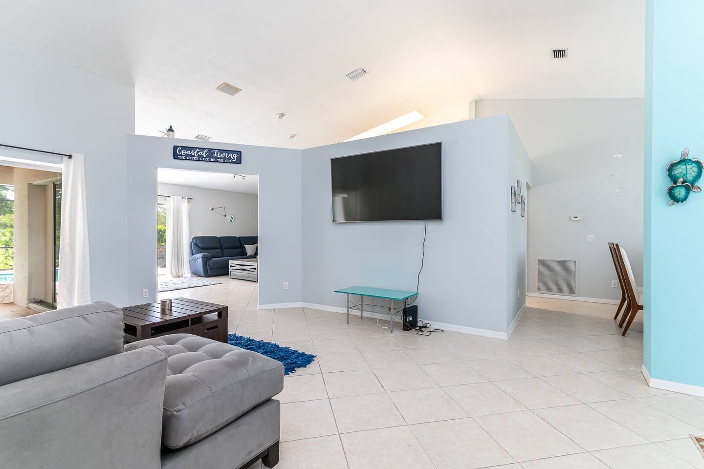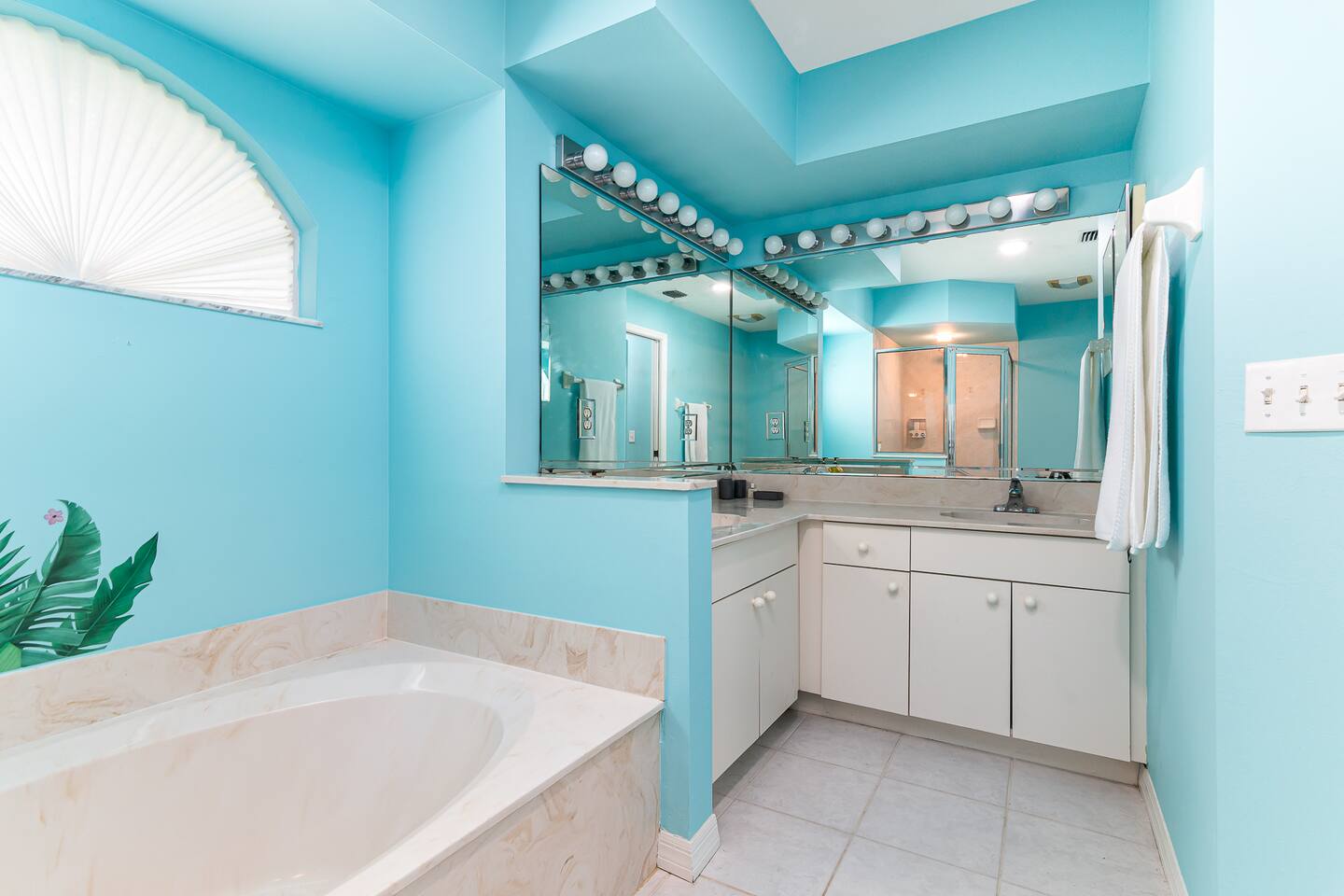 2 large living rooms, formal dining area, and kitchen common areas open floor plan. 70” HD TV AND (2) 40” HD TVs 3 Private Bedrooms. Oversized Master suite with large Master Bathroom with Jacuzzi Tub.