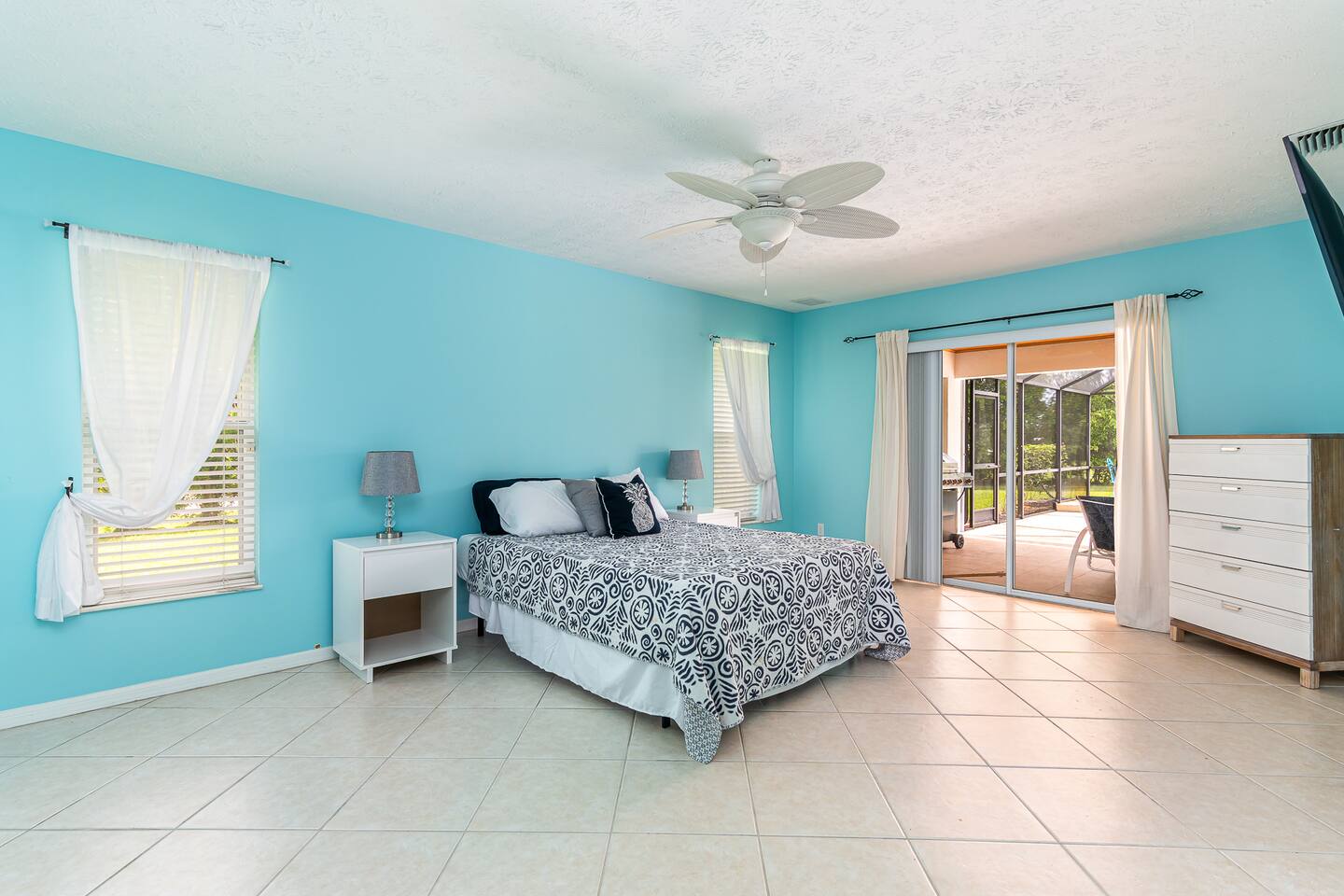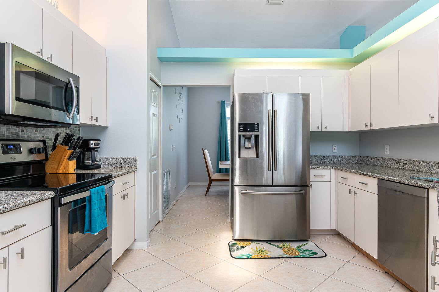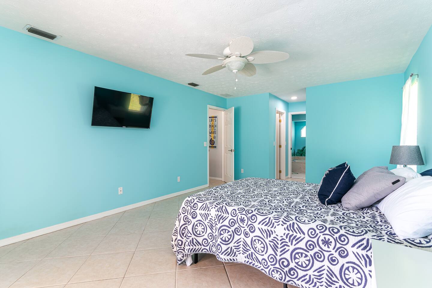 2 large living rooms, formal dining area, and kitchen common areas open floor plan. 70” HD TV AND (2) 40” HD TVs 3 Private Bedrooms. Oversized Master suite with large Master Bathroom with Jacuzzi Tub.