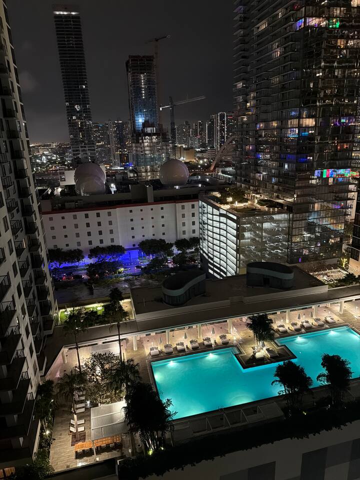 Top 15 Attractions Nearby 1. Kaseya Center (Miami Heat Arena) — 0.7 miles 2. Bayfront Park — 1.0 mile 3. Bayside Marketplace — 1.1 miles 4. Skyviews Miami Observation Wheel — 1.1 miles 5. Frost Museum of Science — 1.6 miles 6. Pérez Art Museum Miami (PAMM) — 1.6 miles 7. Wynwood Walls / Wynwood Arts District — 2.3 miles 8. Miami Children’s Museum — 2.0 miles 9. Brickell City Centre — 2.8 miles 10. Mary Brickell Village — 3.0 miles 11. Design District — 3.0 miles 12. Little Havana (Calle Ocho) — 3.5 miles 13. Vizcaya Museum & Gardens — 5.8 miles 14. South Beach (Ocean Drive / Lummus Park) — 5.8 miles 15. Mid-Beach / Fontainebleau Area — 7.0 miles Dogs are welcome as long as they are added to the reservation and comply with the following • Dogs must be under 25 pounds • Dogs must be registered with proof of rabies vaccination • Dogs must be kept on a leash at all times • Dogs are not permitted in any public areas of the building, indoors or outdoors Thank you for helping us comply with building regulations and ensure a pleasant stay for everyone. Also to comply with building requirements we’ll need a photo ID for all guests over 18, along with the primary guest’s phone number and email address to register you with the building.