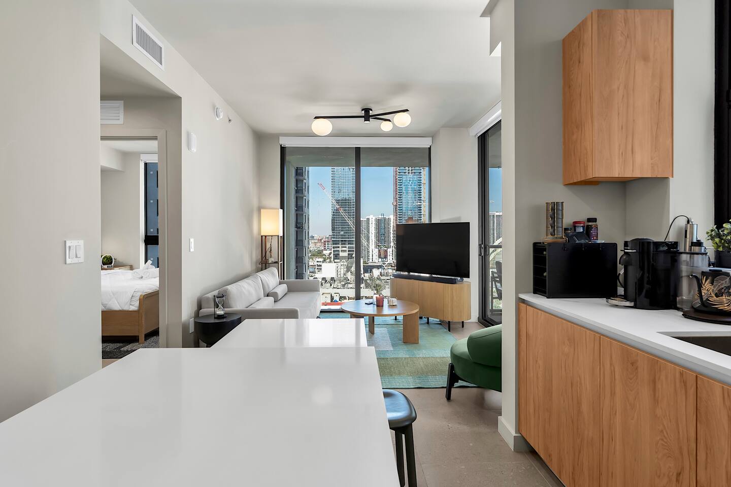 • Brand-new luxury 2BR / 2BA CORNER UNIT condo, located on the 31st floor • Sleeps up to 6 (pull-out sofa) • City skyline & ocean views • All-new appliances & smart TVs • Keyless entry for seamless self check-in • High-speed Wi-Fi, ideal for work or streaming • Resort-style building with full luxury amenities • Prime location in the heart of Miami Worldcenter, walk to dining, shopping & entertainment • Rooftop pool, massive hot tub, BBQ, state-of-the-art, all new equipment gym