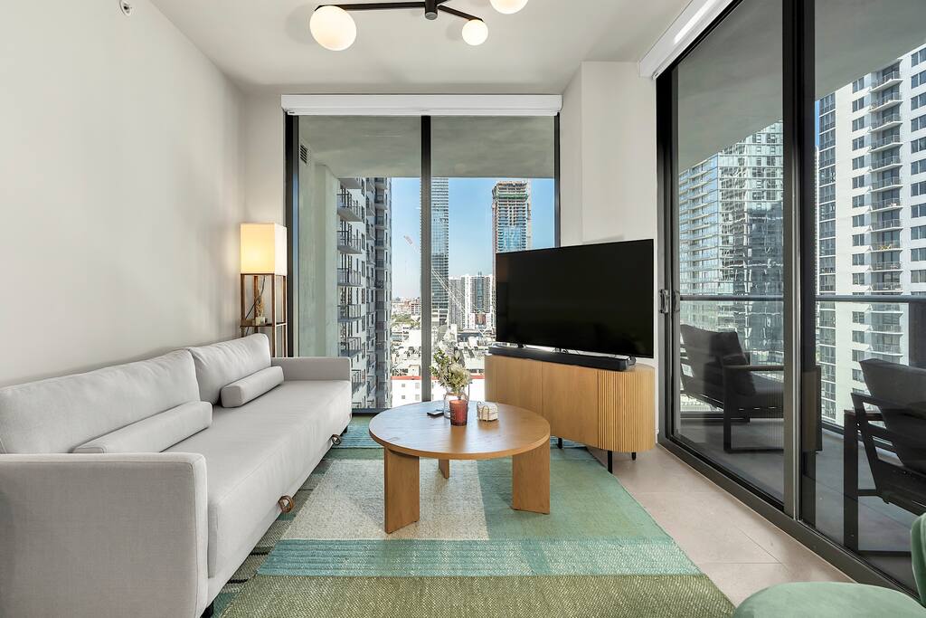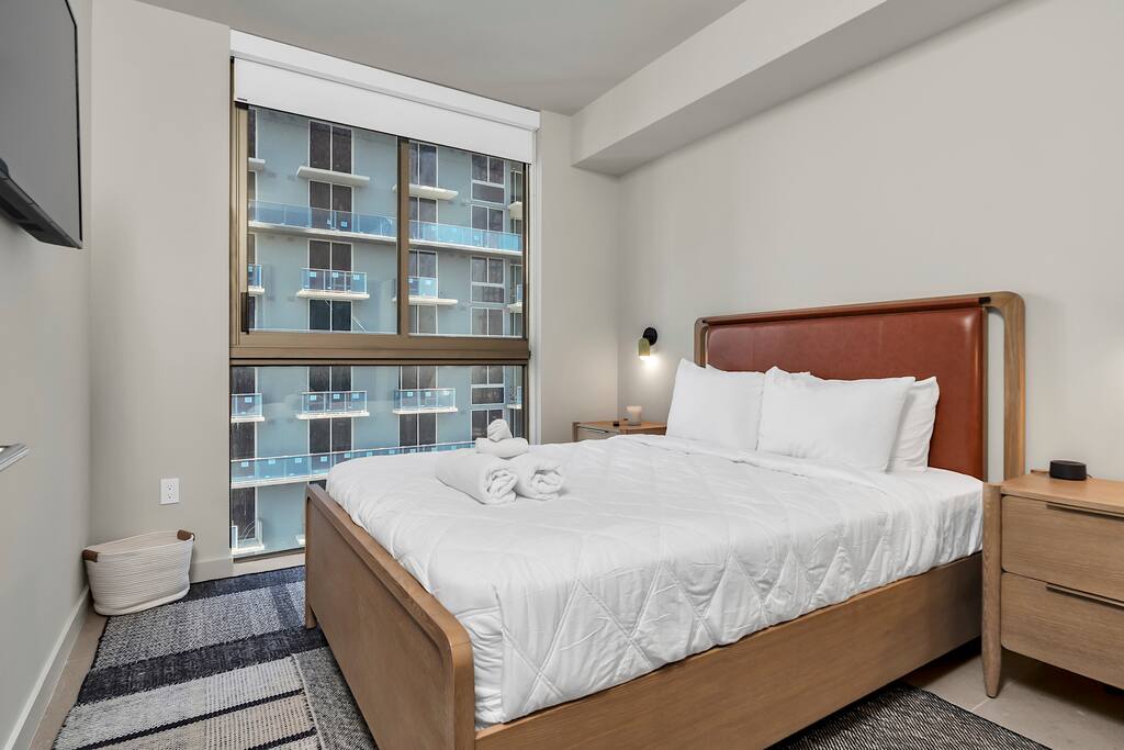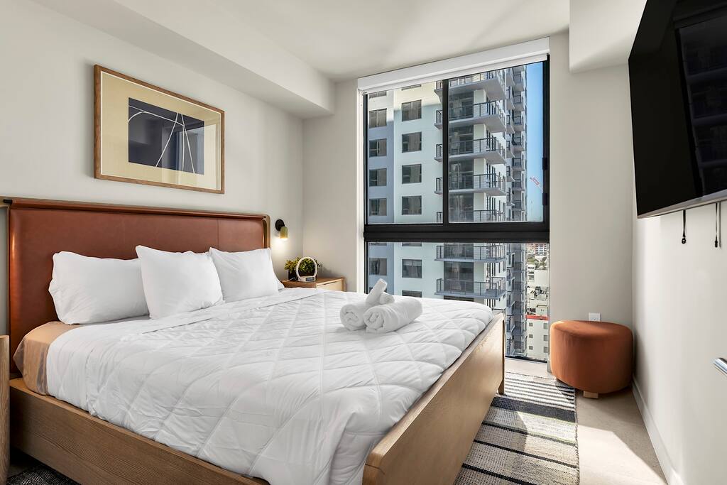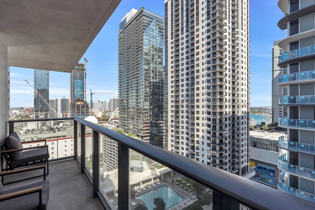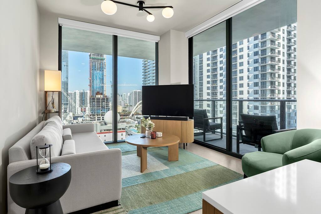 • Brand-new luxury 2BR / 2BA CORNER UNIT condo, high floor, opened December 2025 • Sleeps up to 6 (pull-out sofa) • City skyline & ocean views • All-new appliances & smart TVs • Keyless entry for seamless self check-in • High-speed Wi-Fi, ideal for work or streaming • Resort-style building with full luxury amenities • Prime location in the heart of Miami Worldcenter, walk to dining, shopping & entertainment • Rooftop pool, massive hot tub, BBQ, state-of-the-art, all new equipment gym