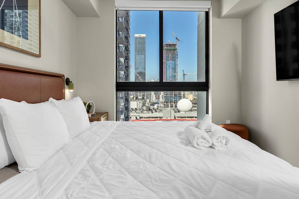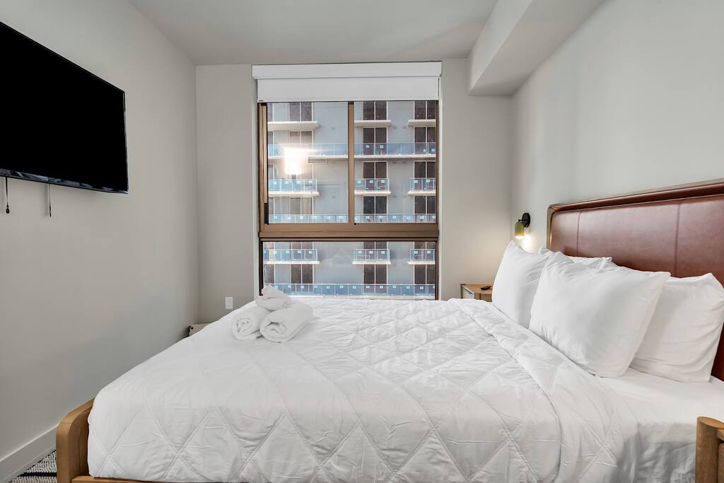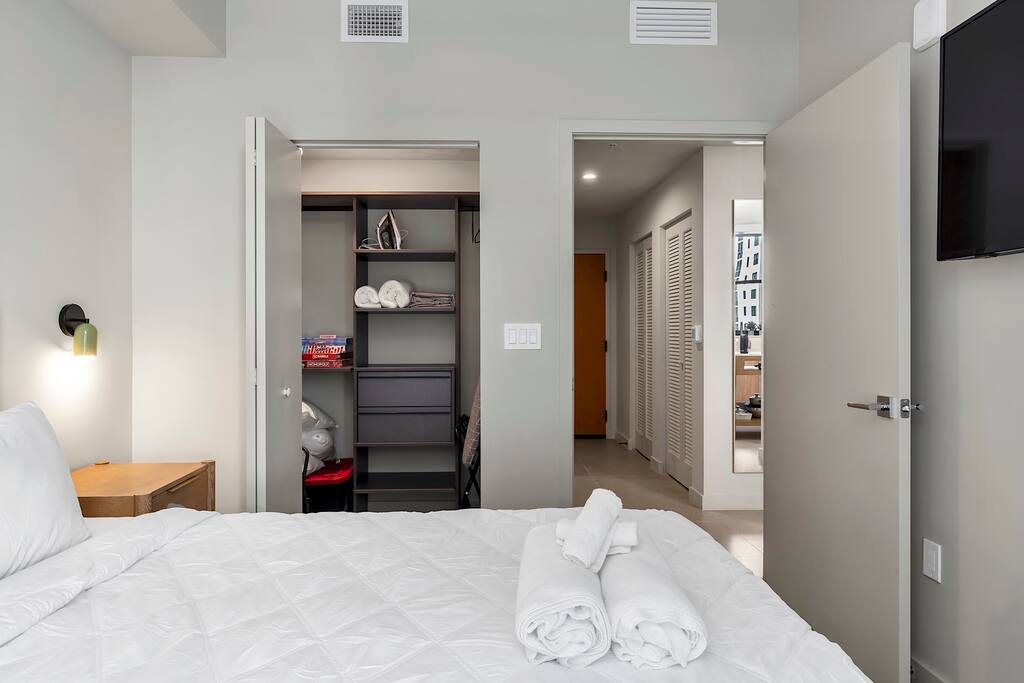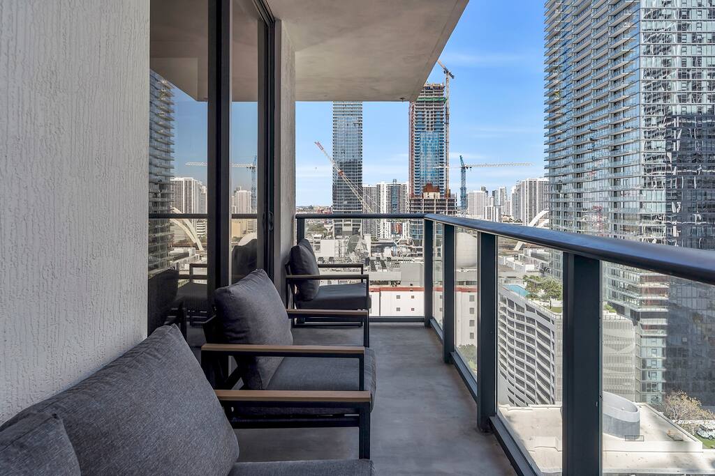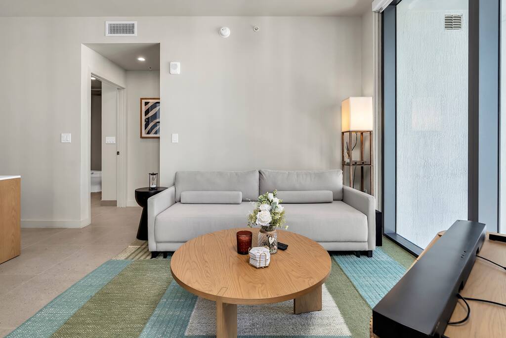 • Brand-new luxury 2BR / 2BA CORNER UNIT condo, high floor, opened December 2025 • Sleeps up to 6 (pull-out sofa) • City skyline & ocean views • All-new appliances & smart TVs • Keyless entry for seamless self check-in • High-speed Wi-Fi, ideal for work or streaming • Resort-style building with full luxury amenities • Prime location in the heart of Miami Worldcenter, walk to dining, shopping & entertainment • Rooftop pool, massive hot tub, BBQ, state-of-the-art, all new equipment gym