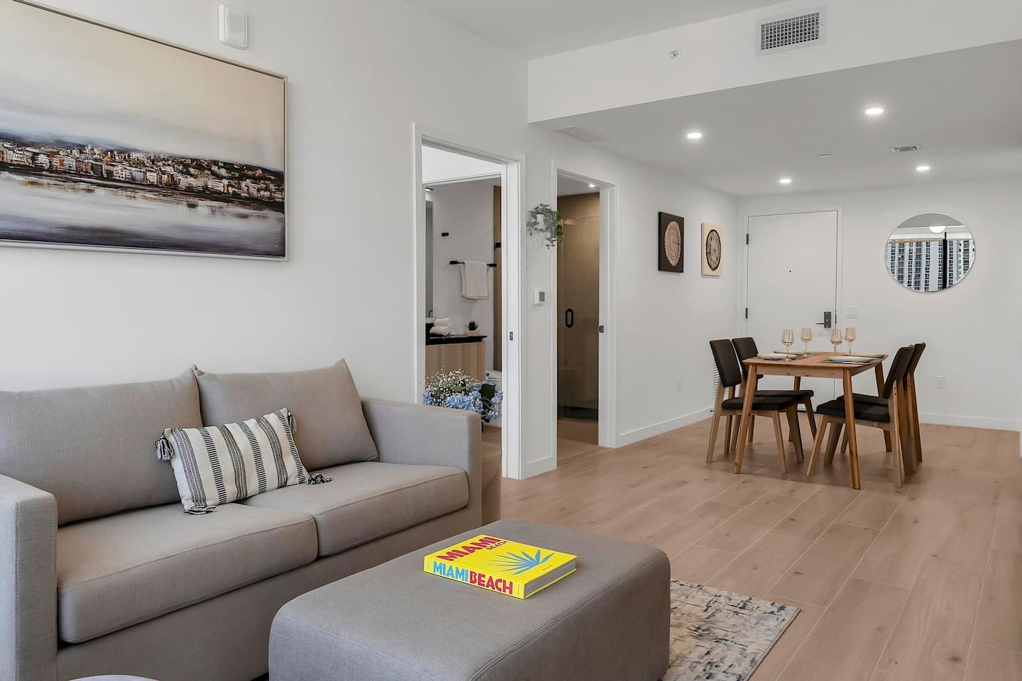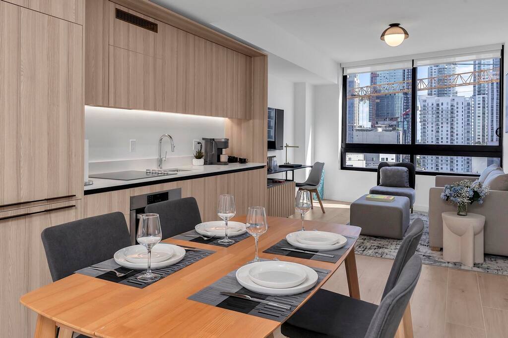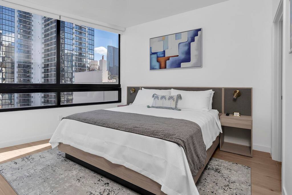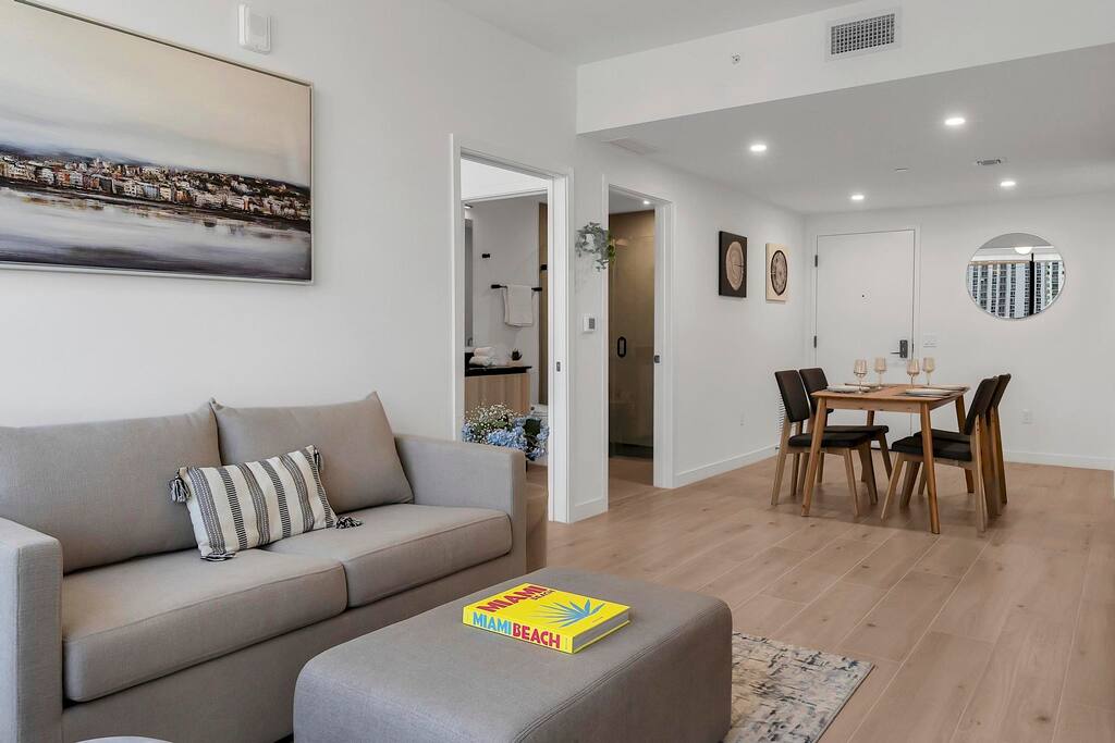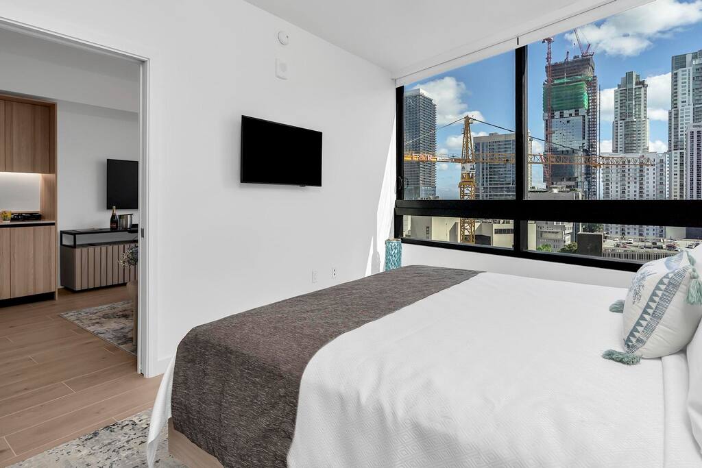 Top 15 Nearby Attractions 1. Miami Worldcenter – approx. 0.5 mile 2. Kaseya Center – 0.7 miles 3. Bayfront Park – 1.0 mile 4. Bayside Marketplace – 1.1 miles 5. Skyviews Miami Observation Wheel – 1.1 miles 6. Phillip and Patricia Frost Museum of Science – 1.6 miles 7. Pérez Art Museum Miami – 1.6 miles 8. Miami Children’s Museum – 2.0 miles 9. Wynwood Walls – 2.3 miles 10. Brickell City Centre – 2.8 miles 11. Mary Brickell Village – 3.0 miles 12. Miami Design District – 3.0 miles 13. Little Havana (Calle Ocho) – 3.5 miles 14. Vizcaya Museum and Gardens – 5.8 miles 15. South Beach – 5.8 miles Perfect For: Brightline travelers Cruise passengers Concert & Heat game attendees Business travelers & remote workers (Fast WIFI) Weekend Miami getaways Second bed is a full size sofa bed in the living area. There are bikes to use in the building. Parking Information Parking is available off-premises at several nearby public garages. The closest option is located at: 40 NW 3rd St Miami, FL 33128 This garage typically offers daily parking for approximately $15 per day and is about half a block from the building, making it a very convenient and affordable choice for guests staying in the area. Other Parking Options • Bayfront Park Garage (255 NE 1st St) — 0.8 mi • Nearby Downtown Garages & Lots — 0.2–0.6 mi Thank you for helping us comply with building regulations.